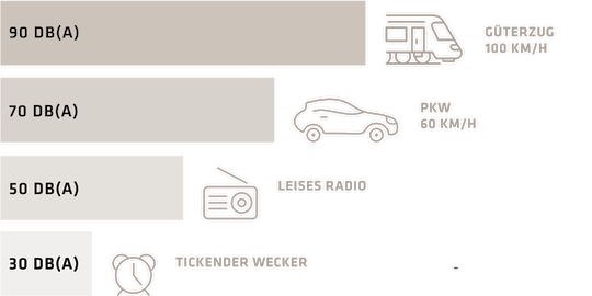 - Die Lautstärke eines Güterzuges reduziert sich dadruch auf die eines sehr leisen Radios